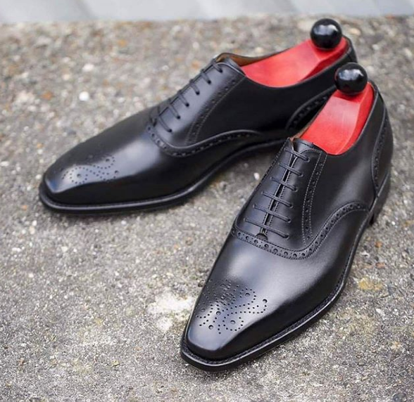 Handmade black brogue toe shoes, luxury business dress shoes, leather shoes men