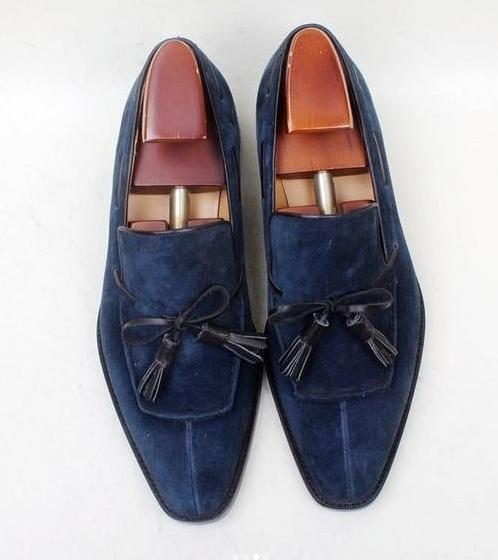 Handmade navy blue shoes men, men moccasin dress shoes, leather shoes for men