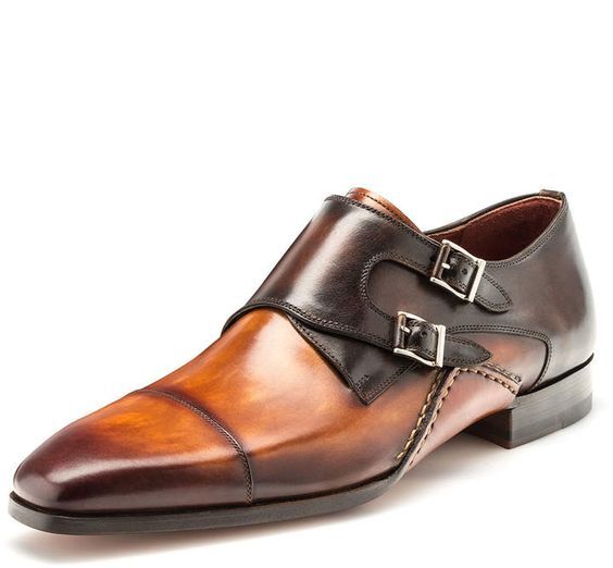 Handmade shaded double monk shoes, leather dress shoes, men office party shoes