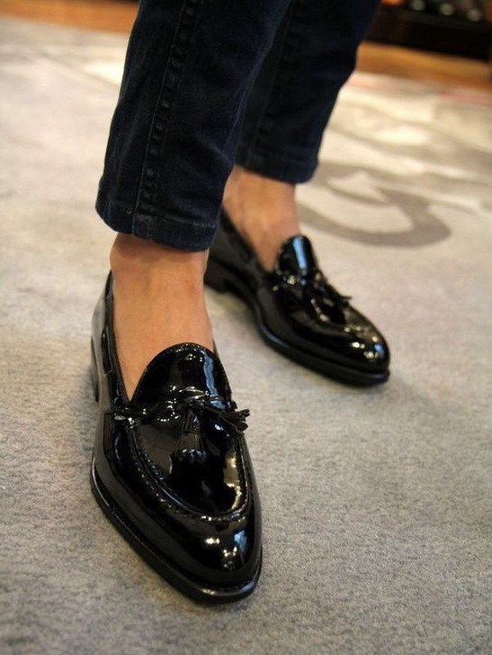Handmade black patent leather shoes, men moccasin formal shoes, casual wear shoe