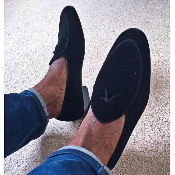 Handmade men black suede shoes, moccasin slip on shoes, men business dress shoes