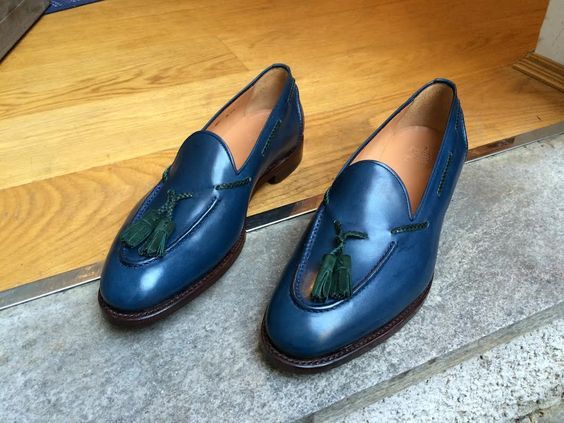 Handmade navy blue moccasin shoes, business dress shoes for men, leather shoes