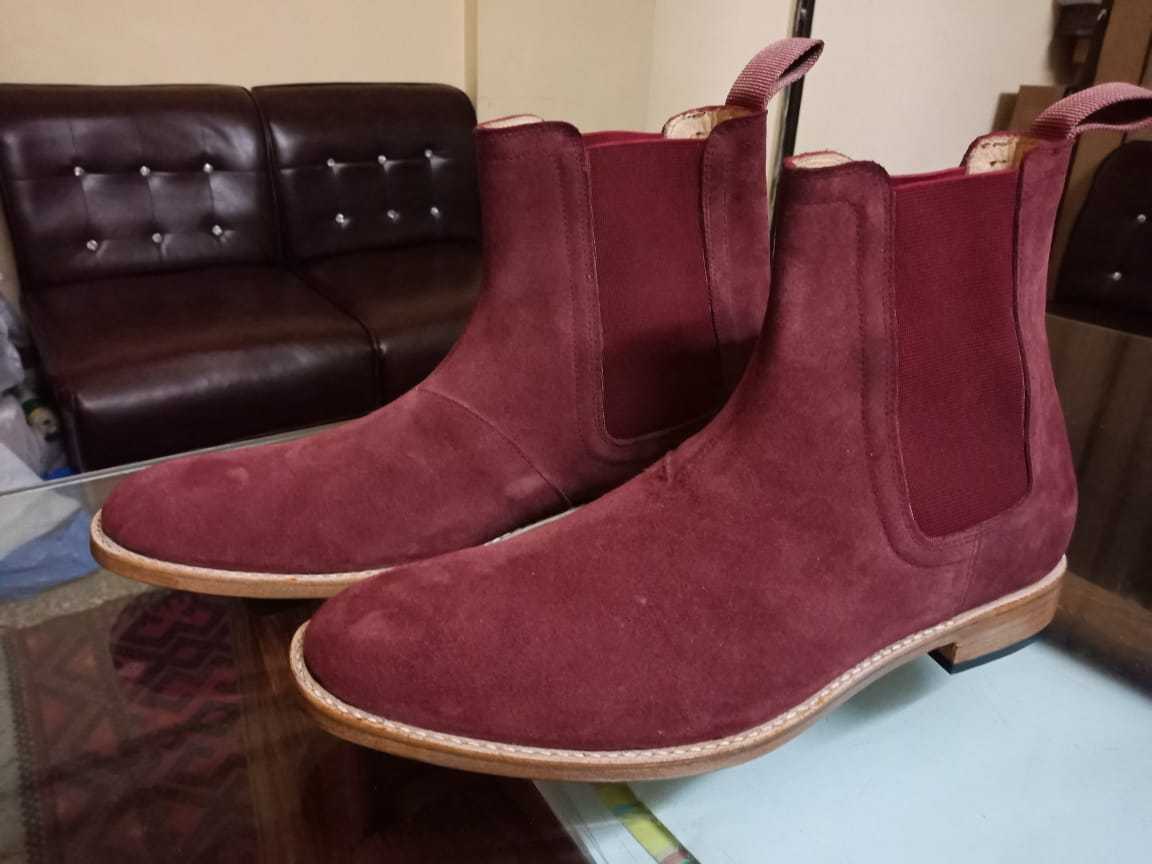 Handmade burgundy chelsea boots, men ankle high boots, dress wedding boot mens