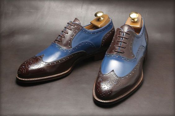 Handmade men two tone spectator shoes, brown and blue dress shoes, wingtip shoes