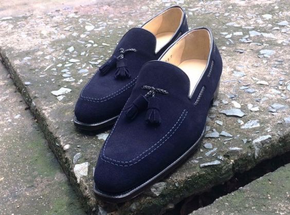 Handmade men navy blue shoes, moccasin shoes for men, suede dress party shoes