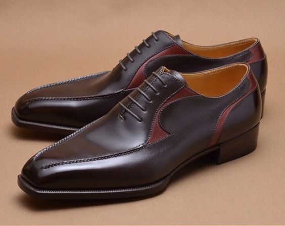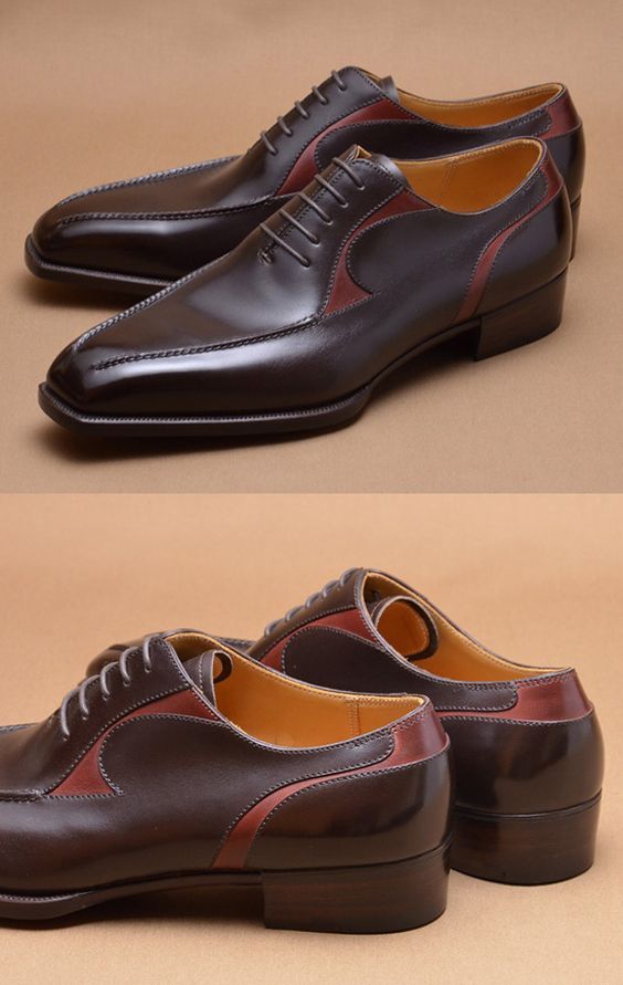 Handmade dark brown shoes, lace up dress shoes for men, men real leather shoes
