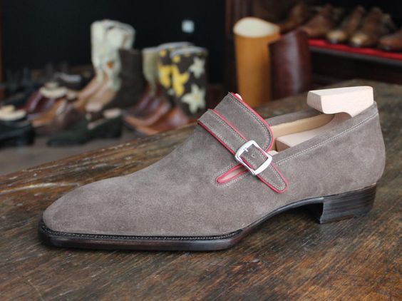 Handmade gray suede shoes, monk strap buckle shoes men, men dress formal shoes