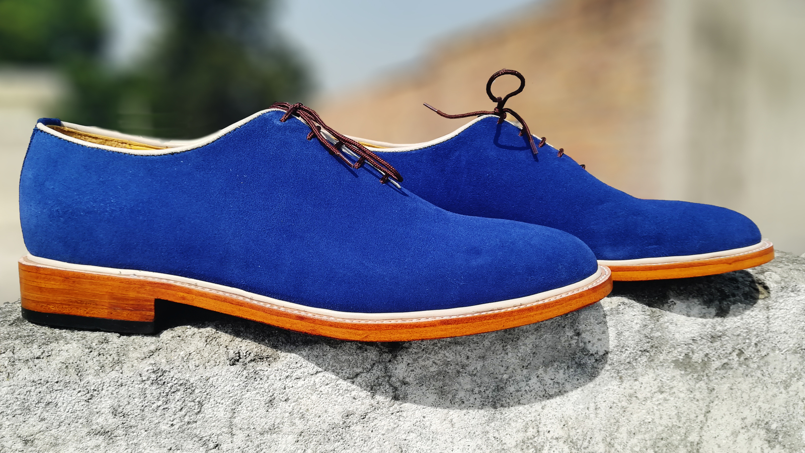 Handmade Men's Oxford Whole Cut Formal Shoes, Men's Dress Royal Blue Suede Shoes