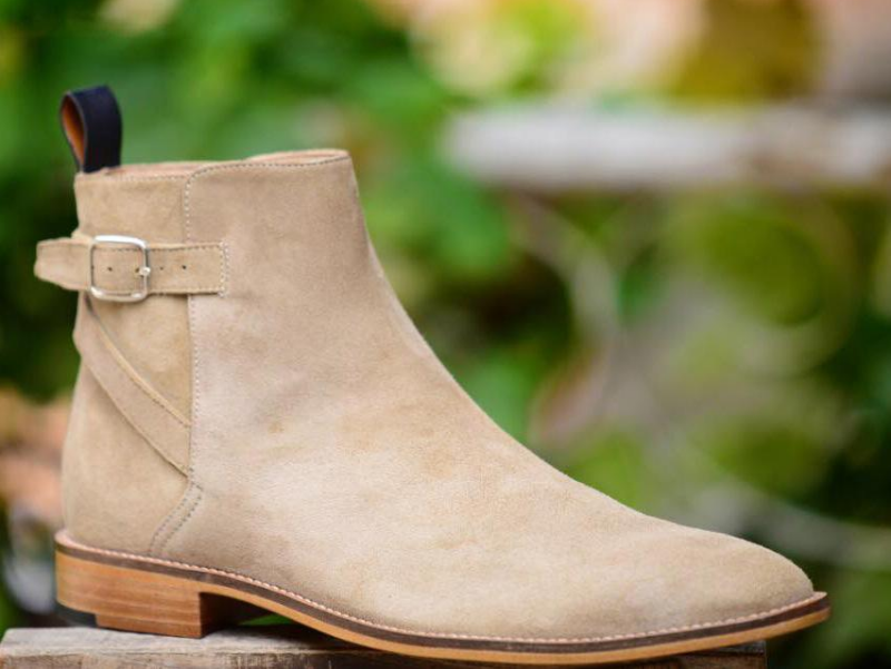 Handmade men beige jodhpurs boots, men buckle suede boot, dress boots for men