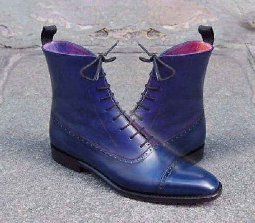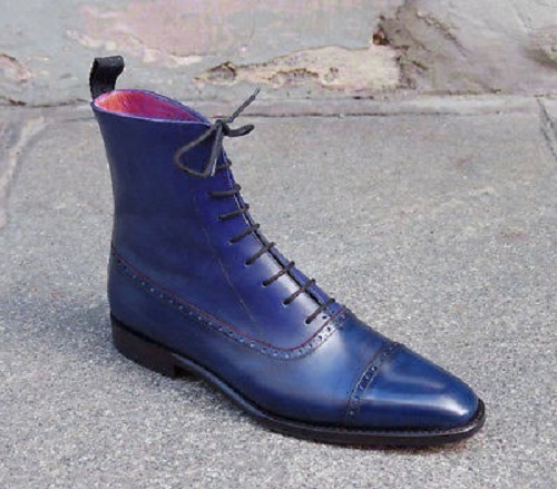 Navy Cap toe genuine leather Boots, Ankle High boot Dress leather boots Handmade