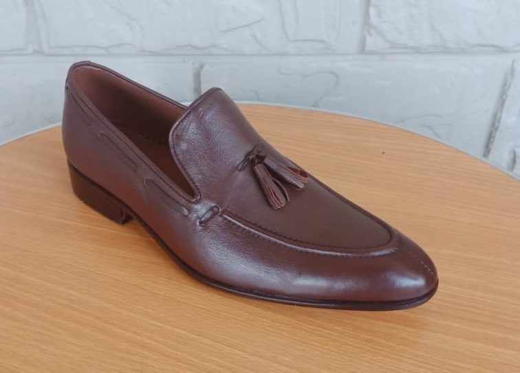 Handmade men brown leather shoes, men moccasin loafer shoes, men dress shoes