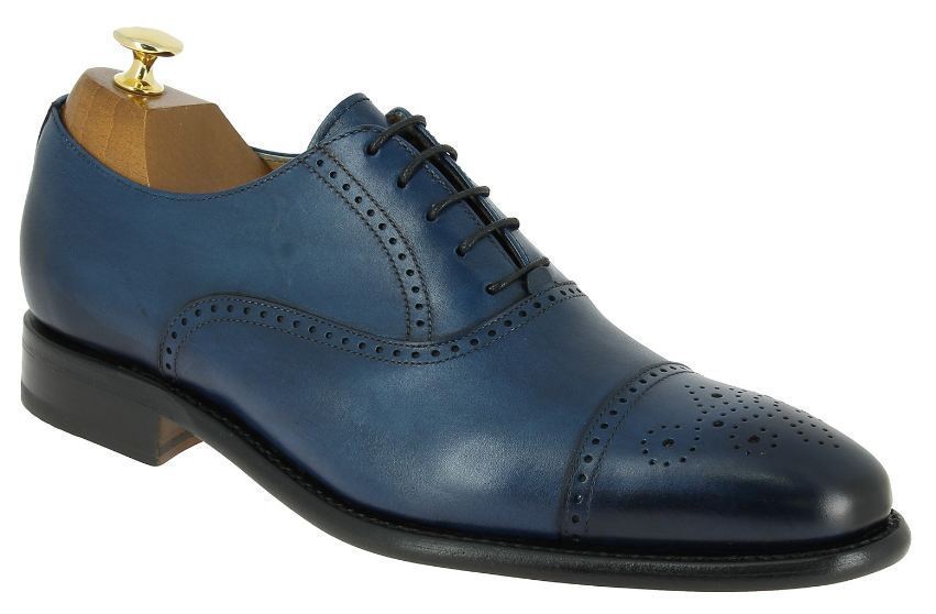 Handmade men navy blue shoes, brogue toe leather shoes for men, men dress shoes
