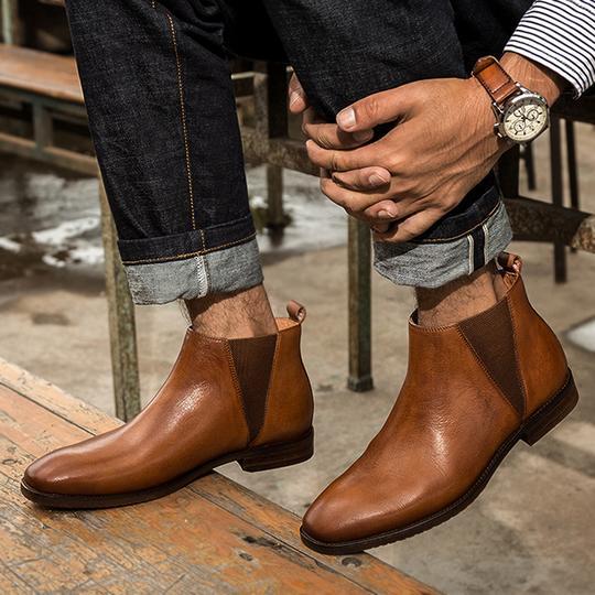 Handmade Men Tan brown Chelsea boots, Men ankle leather boots, Men leather boots
