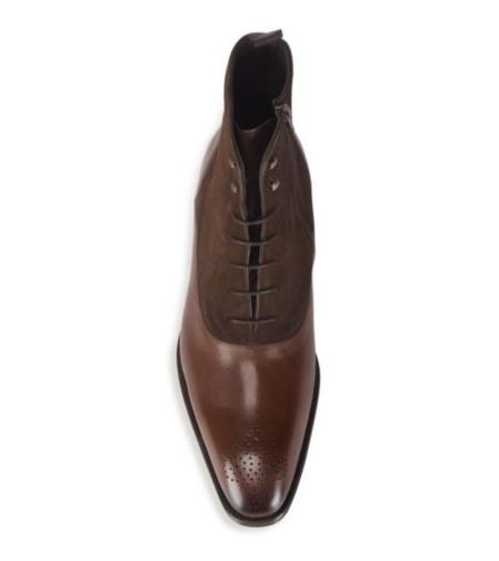 Handmade mens Brown Lace up ankle boots, Men Suede and leather ankle boots
