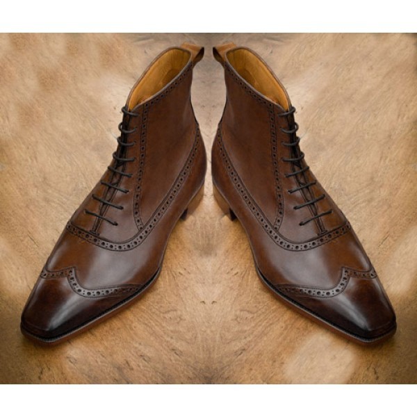 Handmade Men wing tip brogue ankle boot Men brown leather boots Men lace up boot