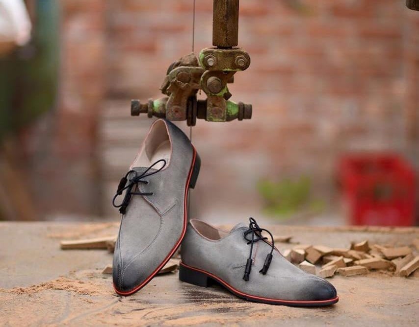 Handmade men gray suede shoe, men dress formal shoes, leather shoes for men