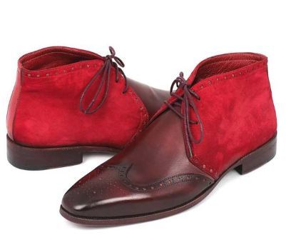 Handmade men Red and brown leather boots, wingtip brogue chukka boot, men boots
