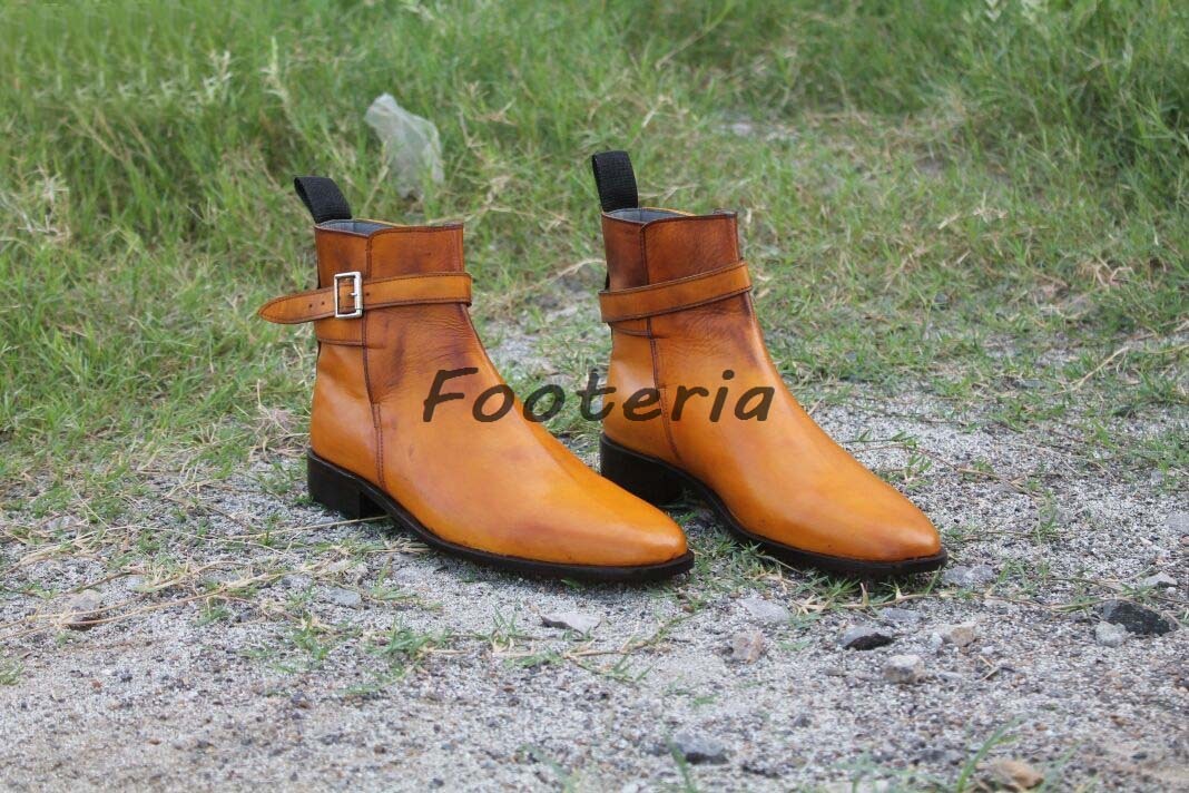 Handmade men leather boots, tan jodhpur boot for men, men dress leather boots