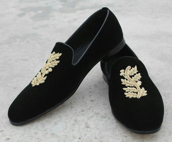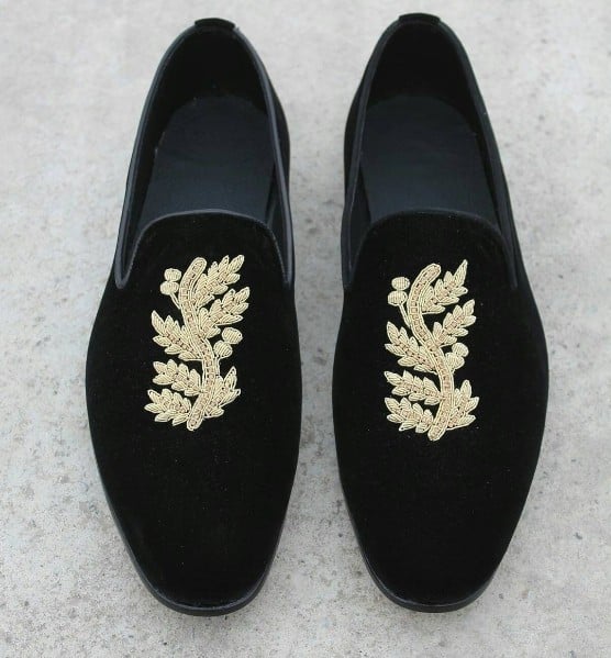 Handmade men velvet loafer shoes, embrioded shoes for men, leather shoes men