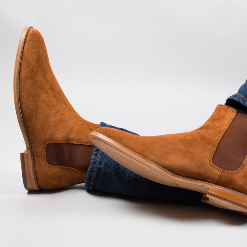 Handmade men tan boots, suede leather boot for men, men chelsea dress boots