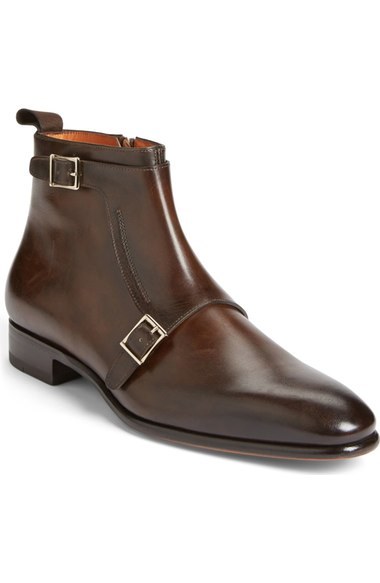 Handmade men brown boots, double monk strap boot, men side zipper boots, formal