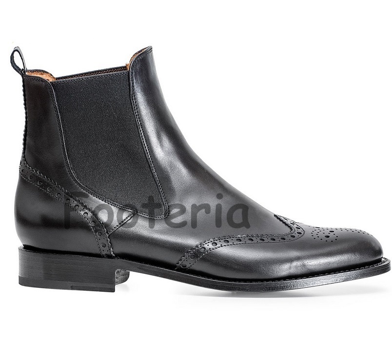 Handmade wingtip brogue boots, chelsea boots for men, men black leather boots