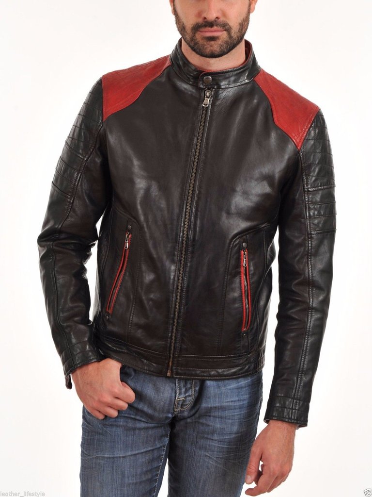 Men real leather jacket, real cowhide leather jacket, biker leather jacket