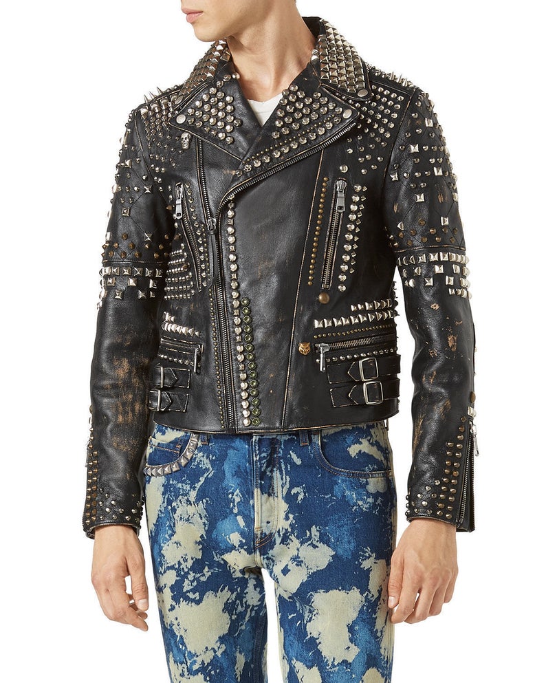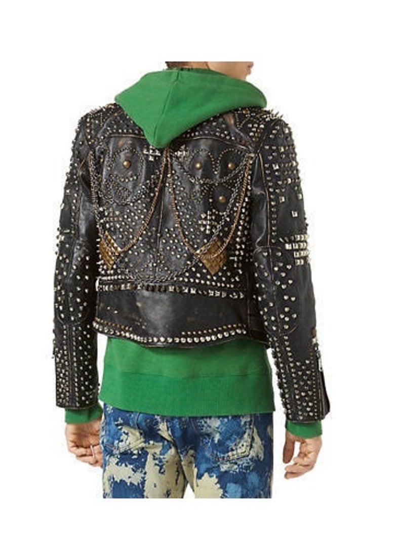 Mens Black Studded Leather Jacket, Rock Punk Style Silver Studded Leather Jacket, Biker Leather Jacket, Emo Jacket