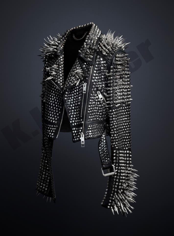 Women black leather jacket with studs and spikes, Leather jacket with studs, Leather jackets for women, Women winter outerwear,Women trendy fashions