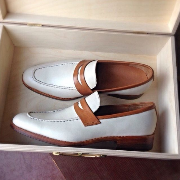 Handmade tan and white spectator shoes, men moccasin slip on shoes, dress shoes