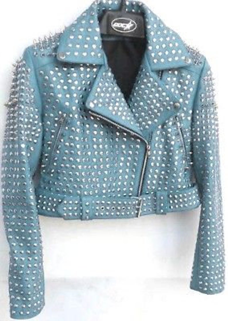 Blue steam punk leather jacket for women, Women studded leather jackets, Biker jackets for women, Women winter outerwear,