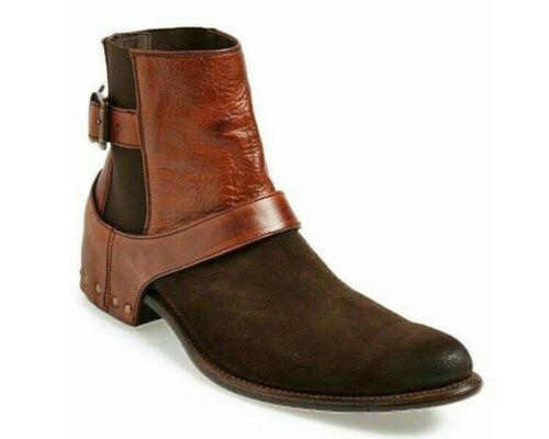 Handmade Chelsea boots for men, Brown suede and tan leather boots for men, Men formal wear two shaded boots, Mens footwear, Boots for men