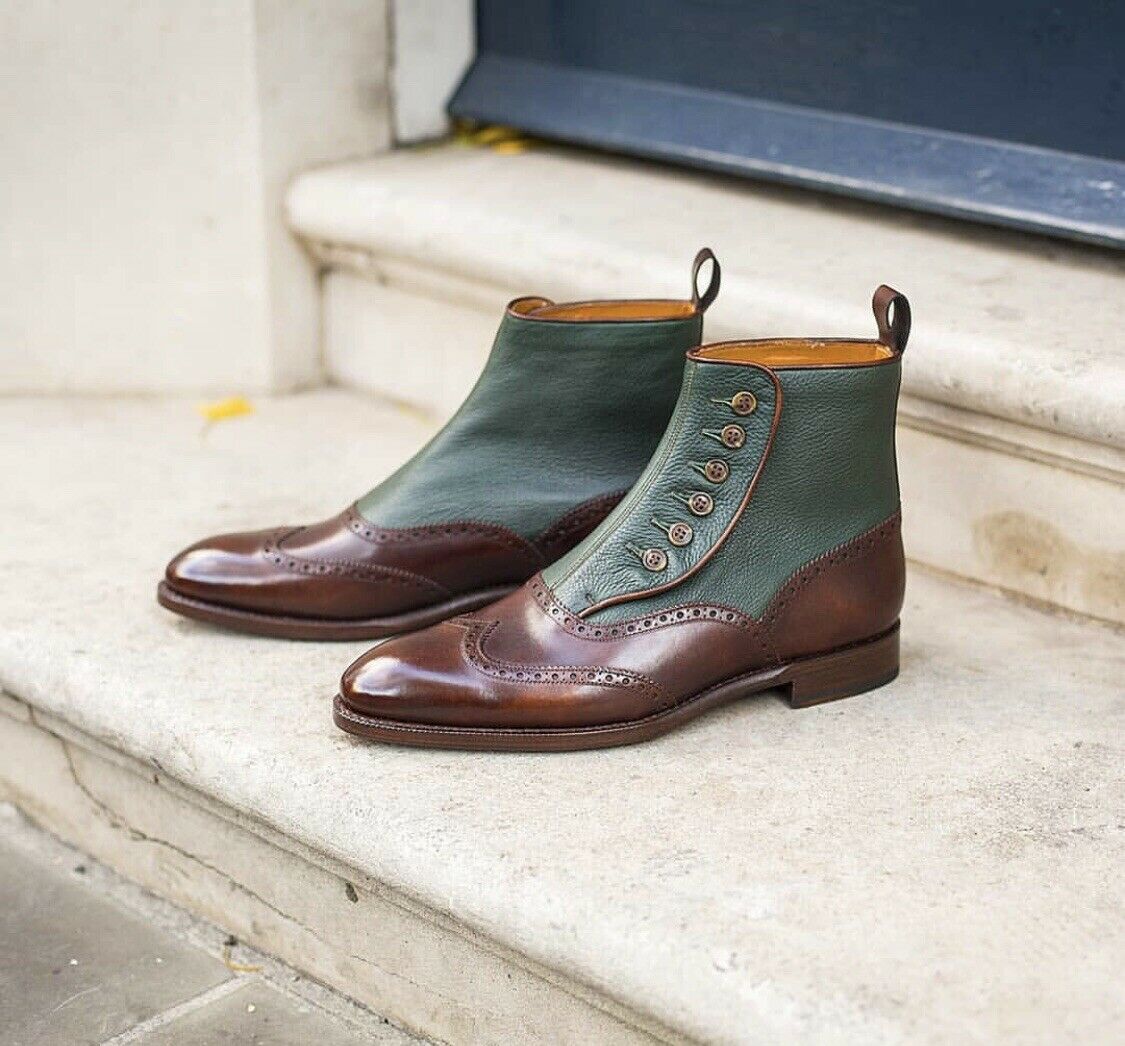 Handmade brown and green leather boots, Two toned boots for men, Men pure leather boots, Boots for men, Men formal boots