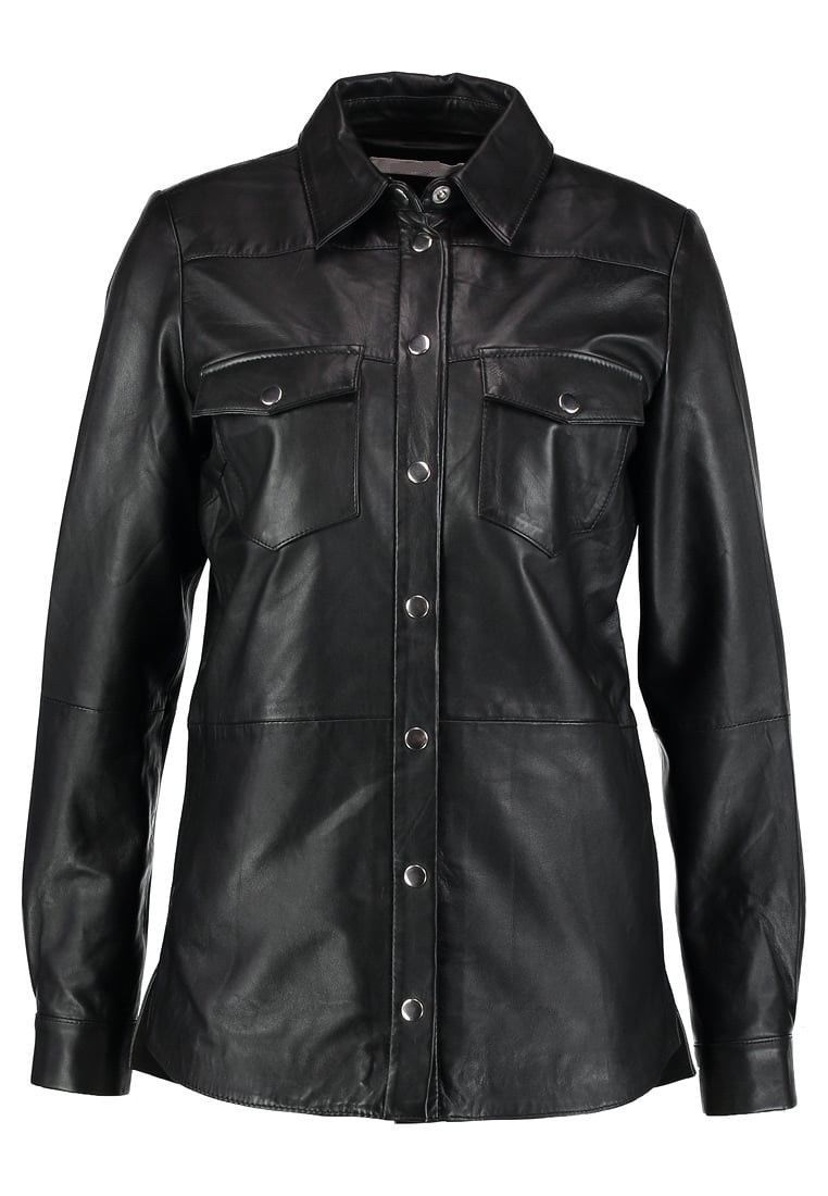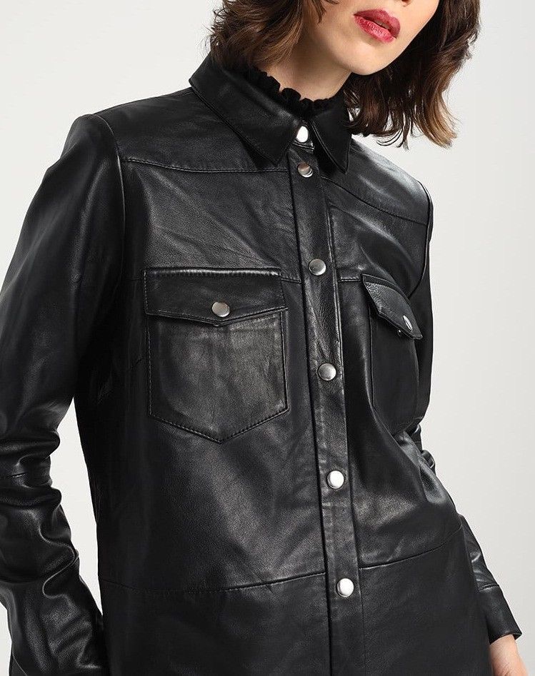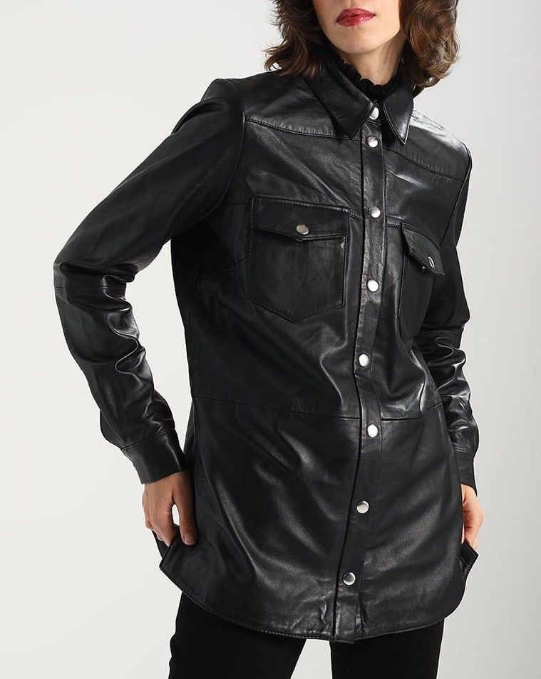 Women black leather jacket with buttoned closure, stylish women jacket, women biker jacket
