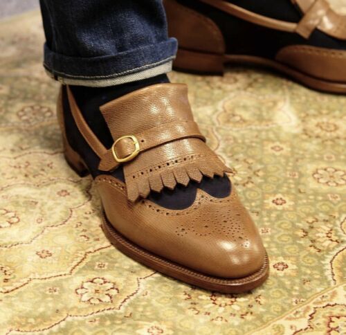 New Handmade Tan Leather and Black Suede Buckle Style Loafer Shoes for Men, Men Loafer Shoes, Two Tone Shoes for Men