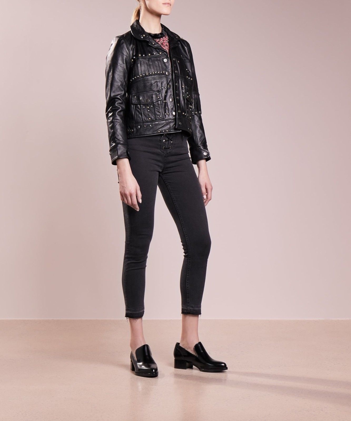 Women Studded and Fringes Leather Jacket, Women Fringed Leather Jacket, Women Rock Punk Jackets
