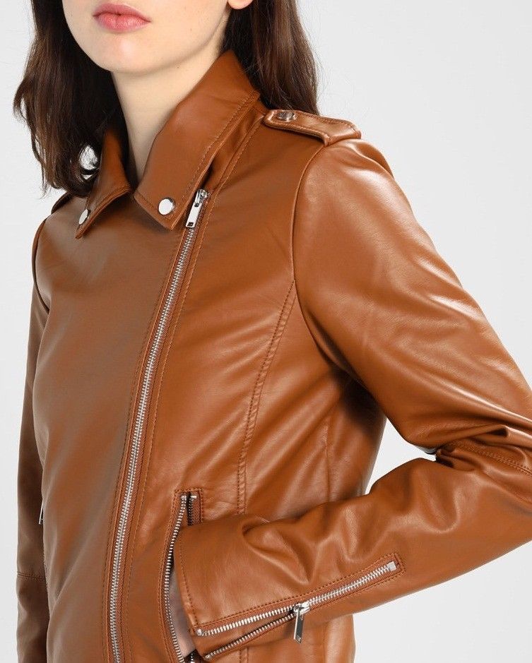 Women Tan Biker Leather Jacket, Jackets for Women, Women Leather Jackets, Women winter leather apparel