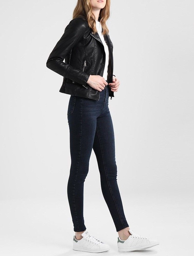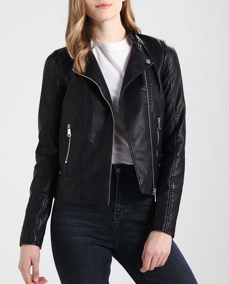 Women Black Leather Jacket with Napeel Collar, Leather Jackets for Women, Women Biker Jackets