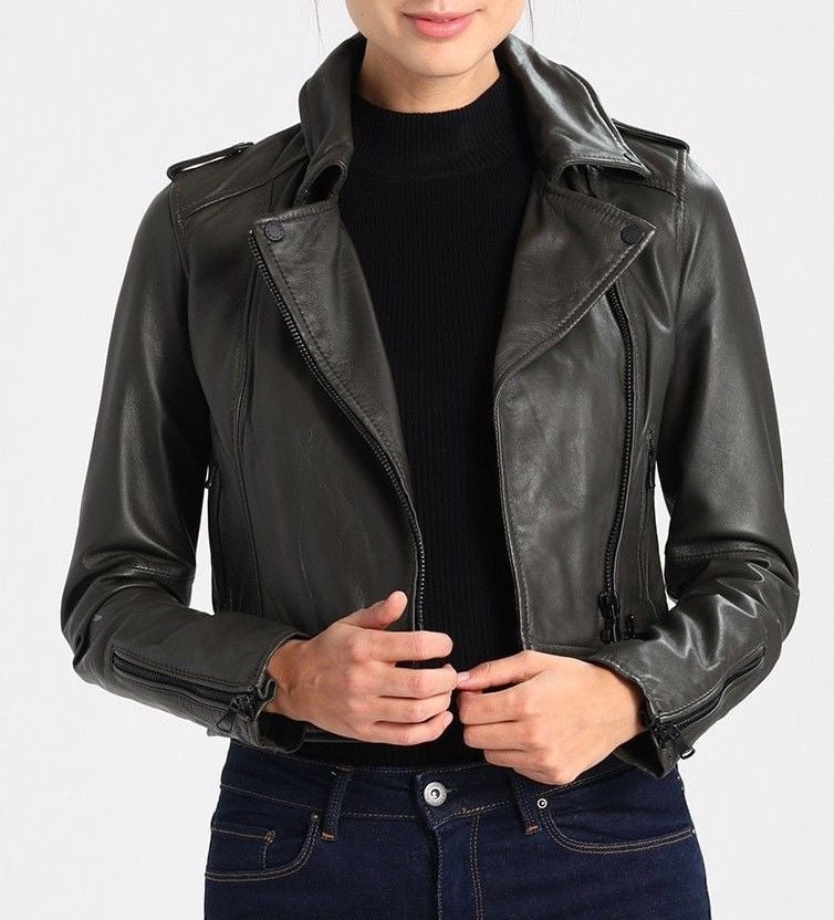 Women Cropped Black Leather Jackets with Wide Notched Collars, Women Cropped Leather Jackets, Biker Jackets for Women