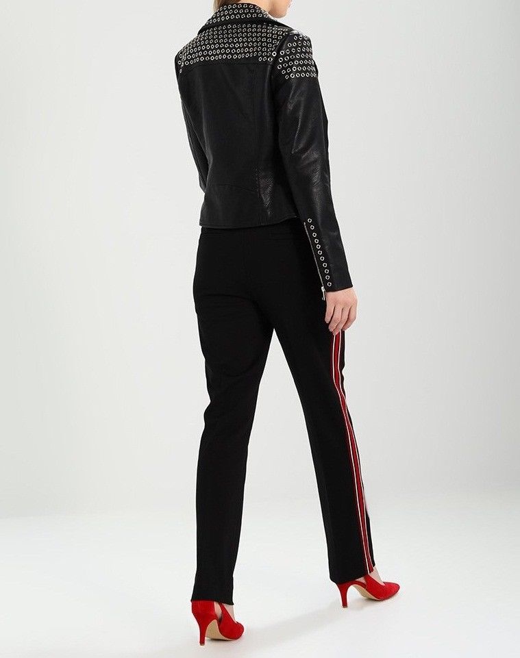 Women Black Leather Jacket with Ring Silver Studs, Studded Jacket for Women,Women Trendy leather jackets