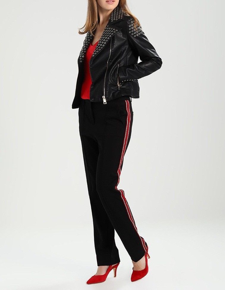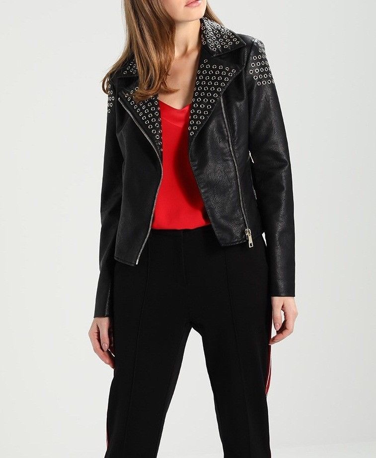 Women Black Leather Jacket with Ring Silver Studs, Studded Jacket for Women,Women Trendy leather jackets