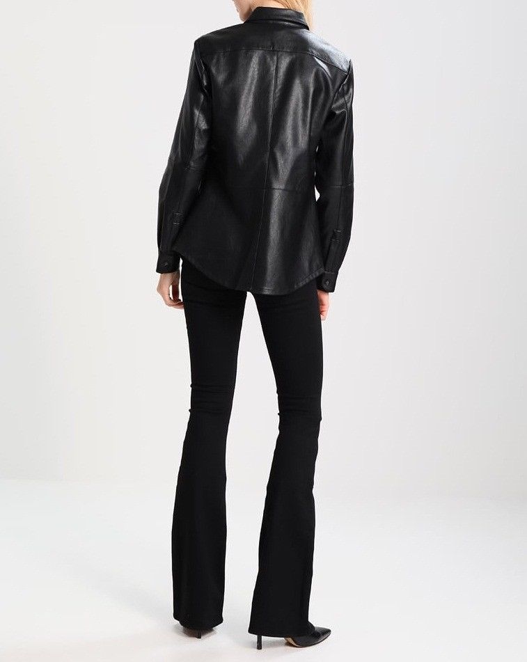 Women Black Shirt Style Leather Jacket with Button Closure, Leather Jackets for Women