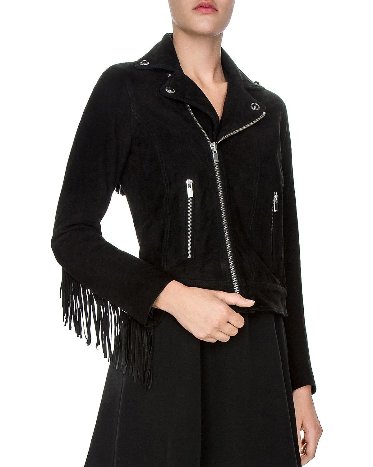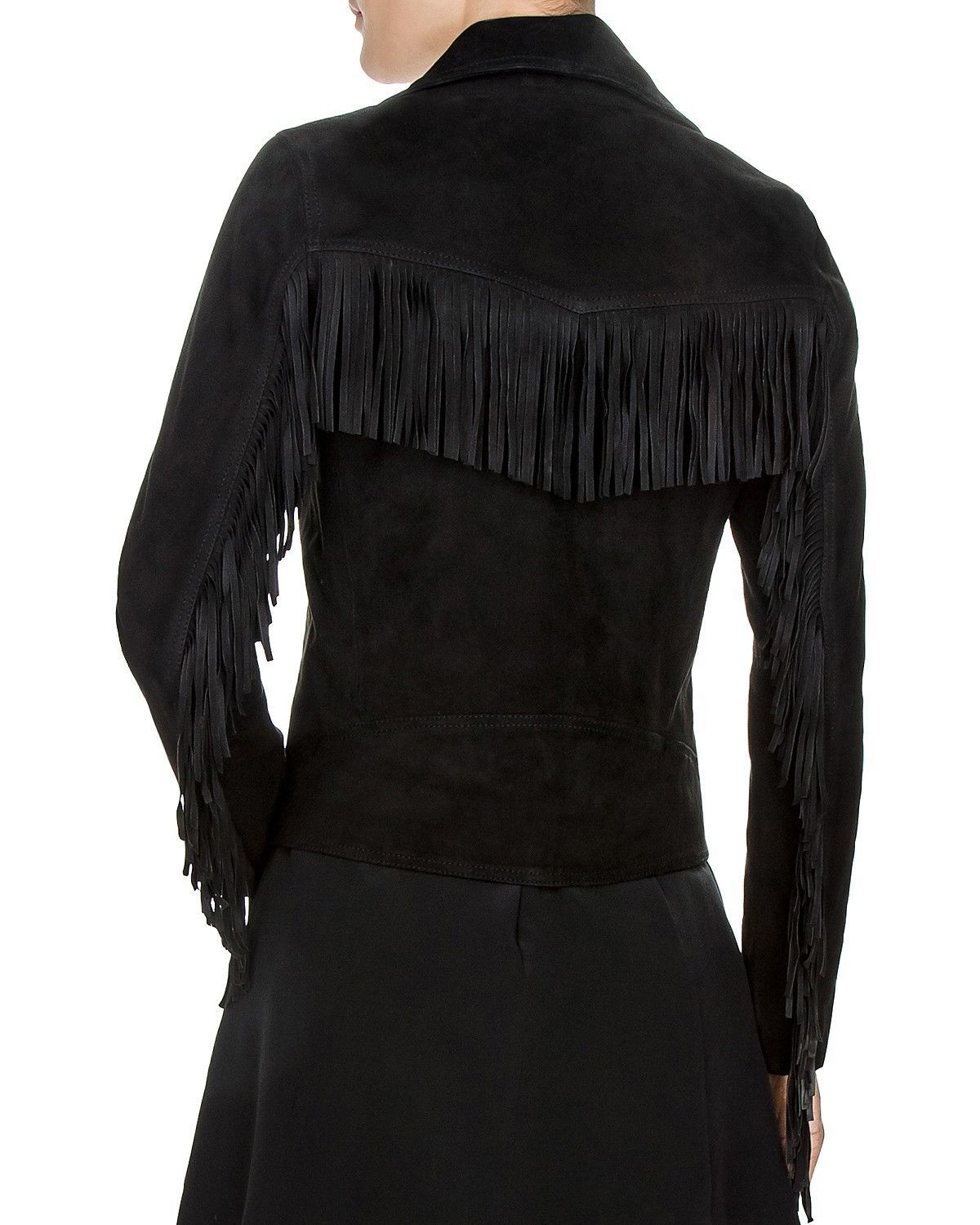Women Black Suede Fringed Jacket, Suede Jackets for Women, Women Fringed Jackets