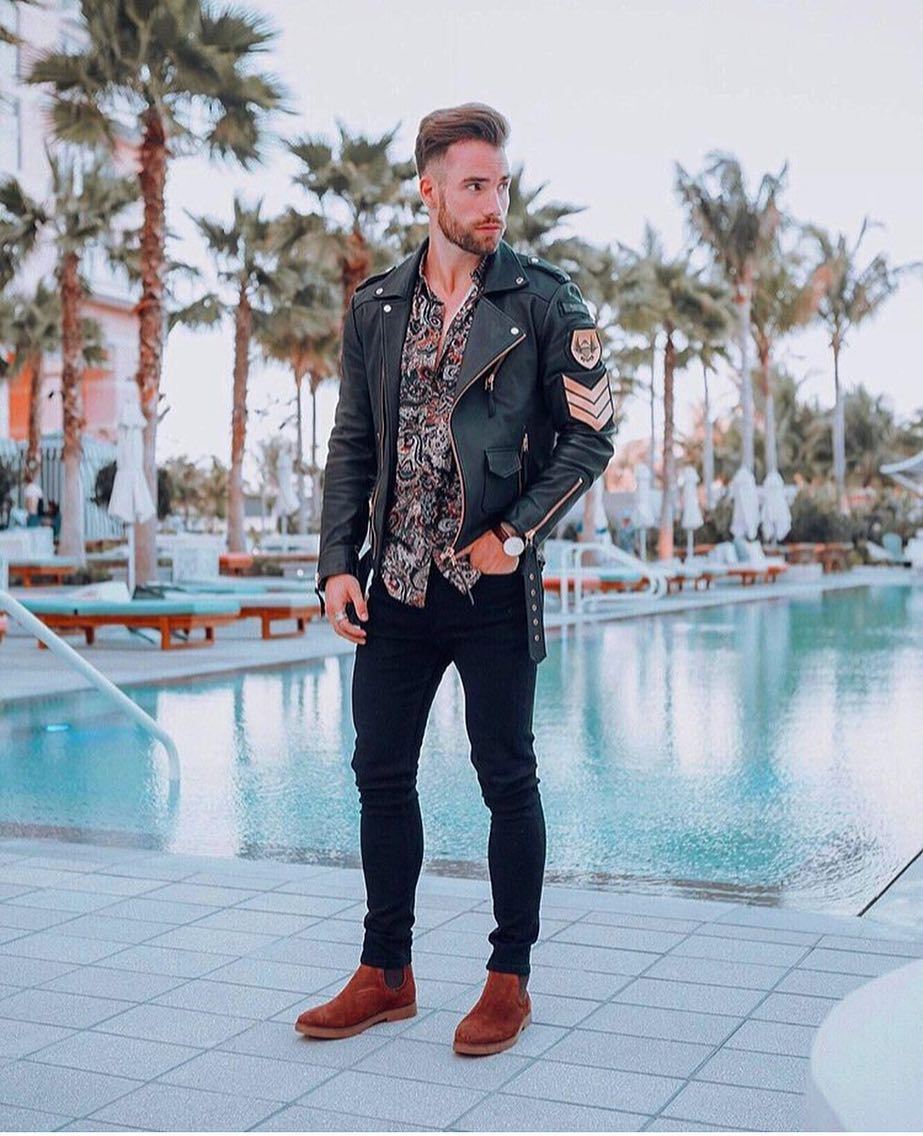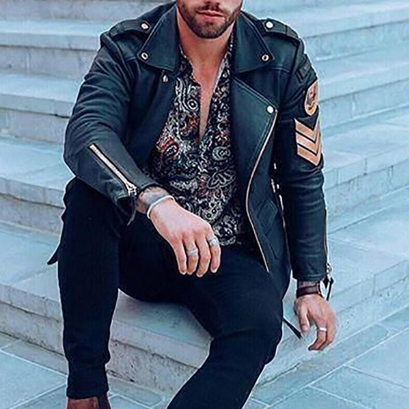 Men Black Leather Jackets with Wide Notched Collars, Biker Jackets for Men, Men Fashion Jackets