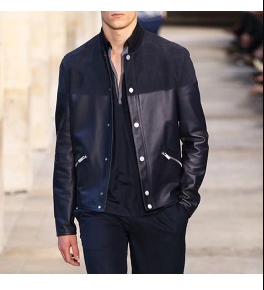 Men Black Slimfit Leather and Suede jacket with Stand up Collars, Biker Jackets for Men, Leather Fashion Jackets for Men