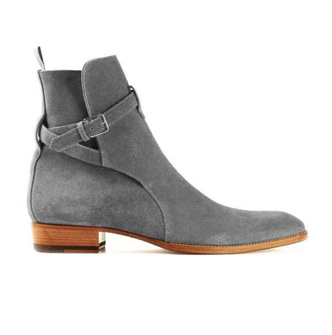 Men Handmade Gray Suede Ankle Leather Boots for Men, Men Ankle Boots, Boots for Men