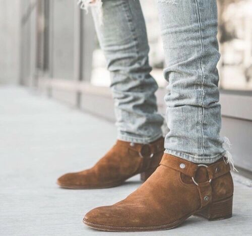 New Men Handmade Tan Motorcycle Genuine Suede Leather Zip Fastening Boots, Ankle Biker Boots for Men, Men Bikers