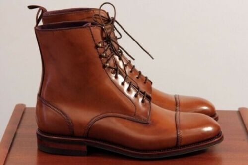 New Handmade Pure Tan Leather Ankle Boots for Men, Men Handmade Formal Dress Boots, Boots for Men