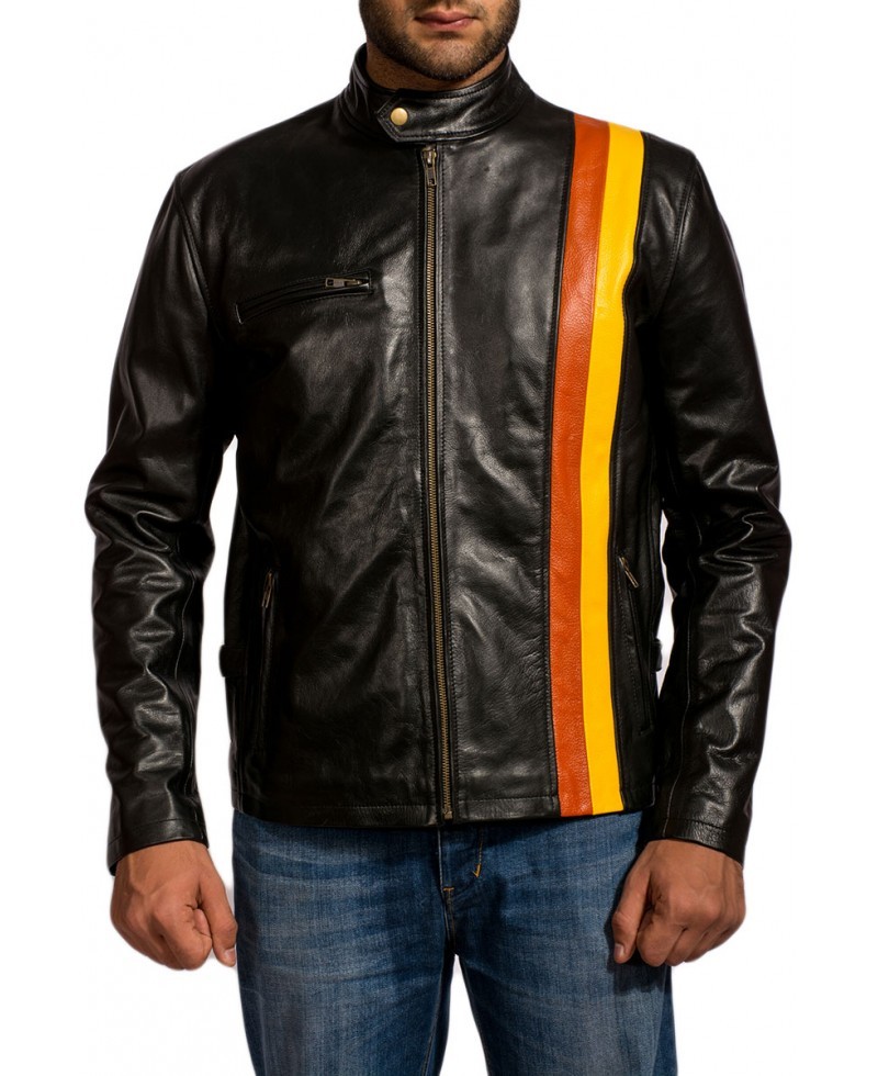 Strip Real Lambskin Leather Men Leather Jacket