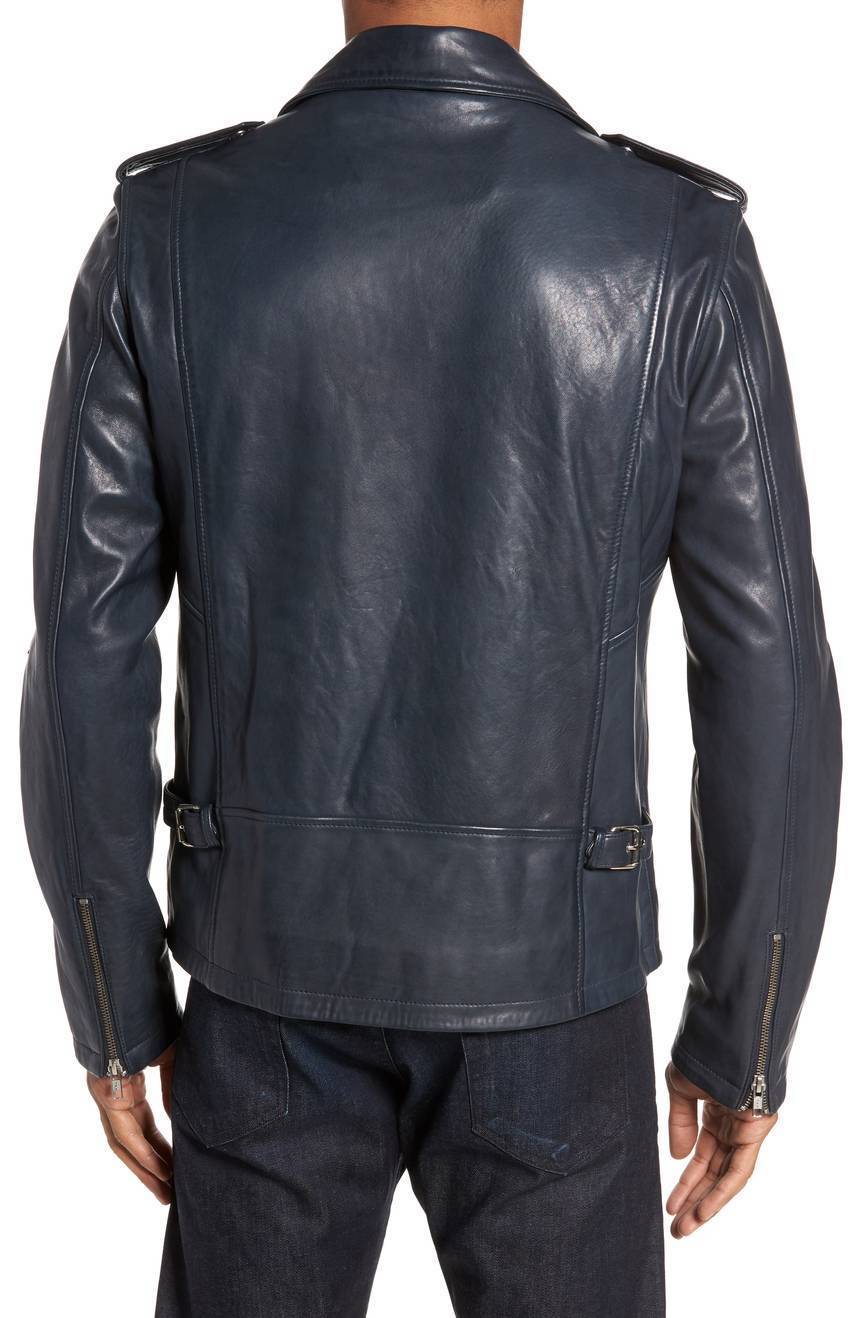 Asymmetric Front Notched Collar Men Genuine Leather Jacket Slim fit Biker jacket